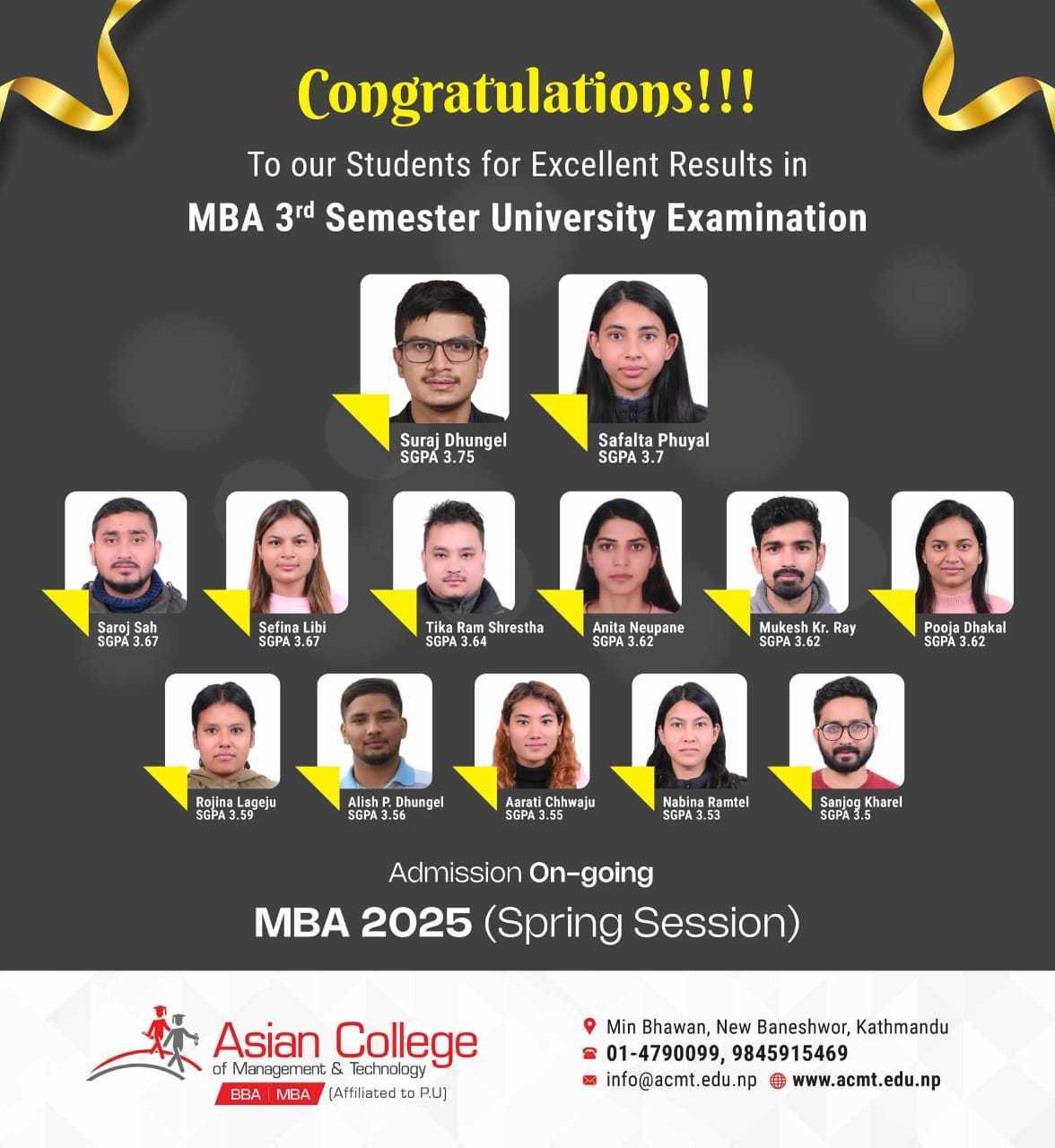 Asian College of Management & Technology (ACMT) was established in 2008 with a vision to provide the society and the nation, excellence in the field of management & technology by providing modern infrastructure facilities, competent faculty, and an active forum for interaction.